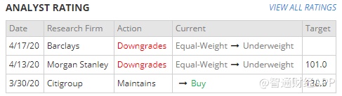 4月17日,巴克莱以潜在的毛利率风险为由,将德州仪器的评级从“持股观望”下调至“减持”,目标价从130美元降至105美元。此前4月13日,大摩将评级下调至“减持”,目标价为101美元。