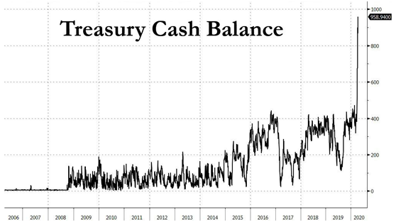 尽管3月下旬的美元流动性危机似乎已经解决了,但Pozsar认为有一件事仍然可以引发另一场危机--美国财政部的现金余额提高到创纪录的9600亿美元。