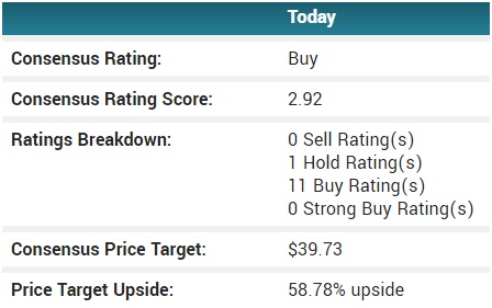 在这12位分析师中,1位给出“持有”评级,11位“买入”评级,因此该股的普遍评级为“买入”。