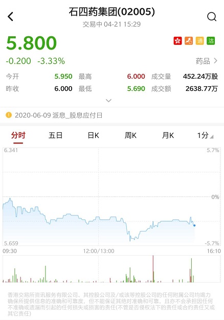 智通财经APP获悉,石四药集团(02005)发布公告,集团一季度的未经审核营业额同比减少12.1%至约9.51亿港元;股东应占溢利同比减少17.2%至约2.16亿港元。该股午后一度跌5%,截至发稿,跌3%,报5.82港元,成交额2645.72万港元。
