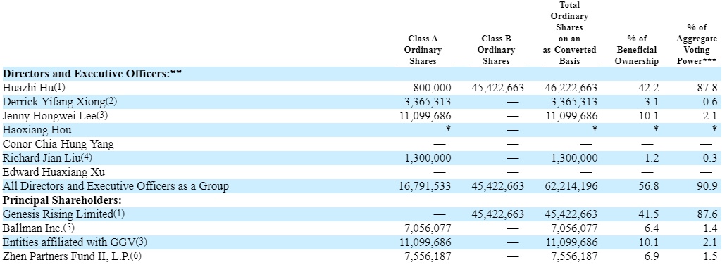 GGV持股为10.1%(此前为10.2%),有2.1%投票权(保持不变)。GGV持股数增至11,099,686股A类普通股(此前为10,799,686股A类普通股)。