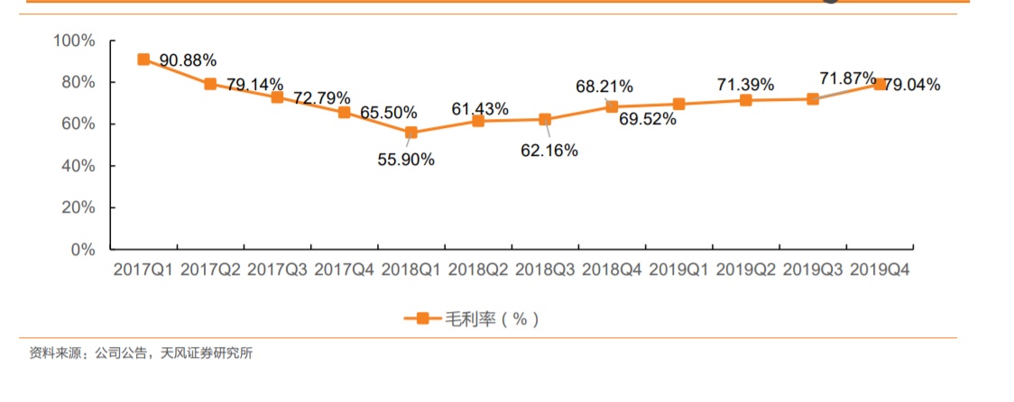 超大班班型具备规模效应,学生人数增长推动毛利率不断提升。FY19Q4 毛利率同比增加 10.83pct。FY19Q4 跟谁学毛利 7.39 亿元,同比增长 494.43%,毛利率 79.04%,较 FY18Q4 的 68.21%同比增加 10.83pct。公司毛利率与线下教培机构比较高,主要系公司授课老师经验丰富因此课程定价较高,同时公司授课采用超大班形式提升毛利率。