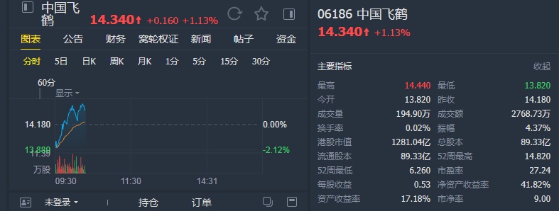 智通财经APP获悉,高盛发表报告,将中国飞鹤(06186)今年下半年每股盈利预测下调2.9%,由原来每股盈利0.34元人民币,减至0.33元人民币,下调原因主要是纠正模型中的链接错误。而全年盈利预测仍维持每股盈利0.62元人民币。