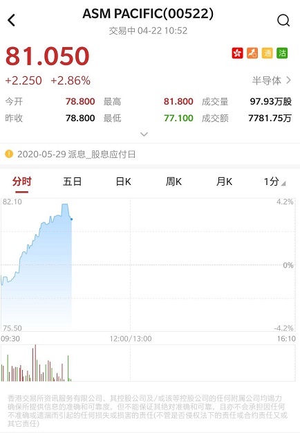 较去年同期及前三个月分别增加45.3%及50.2%。截至发稿,涨2.86%,报81.05港元,成交额7783.37万港元。
