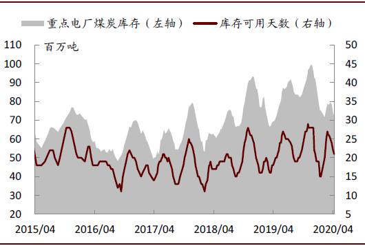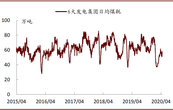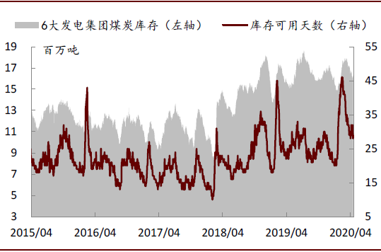 2020年3月份全国总发电量/火电产量同比分别-4.6%/-7.5%。考虑到公共卫生事件带来的宏观环境变化,我们认为2020年全年全国电力需求或仅仅微增,而火电需求可能同比小幅下降,将会对煤炭需求增长产生冲击。当前6大发电集团日耗为56.4万吨,同比-13.9%,库存可用天数为29天,较高的库存也使得煤炭供应趋于宽松。