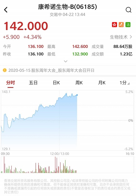 中国疾控中心主任高福称,对于疫苗研发的时间表,如果按正常流程,可能要到今年年底或明年年初才能研发出来。但可能会在应急的情况下,在年底给一部分人如医务人员使用。截至发稿,康希诺生物-B(06185)涨4.34%,报142港元,成交额1.23亿港元。