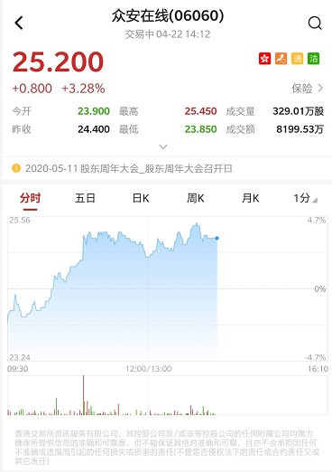 智通财经APP获悉,中信建投证券发布研报称,考虑保险公司及互联网科技公司的估值水品,首次给予众安在线(06060)“买入”评级,目标价37.8港元。截至发稿,众安在线涨3.28%,报25.2港元,成交额8185.67万港元。