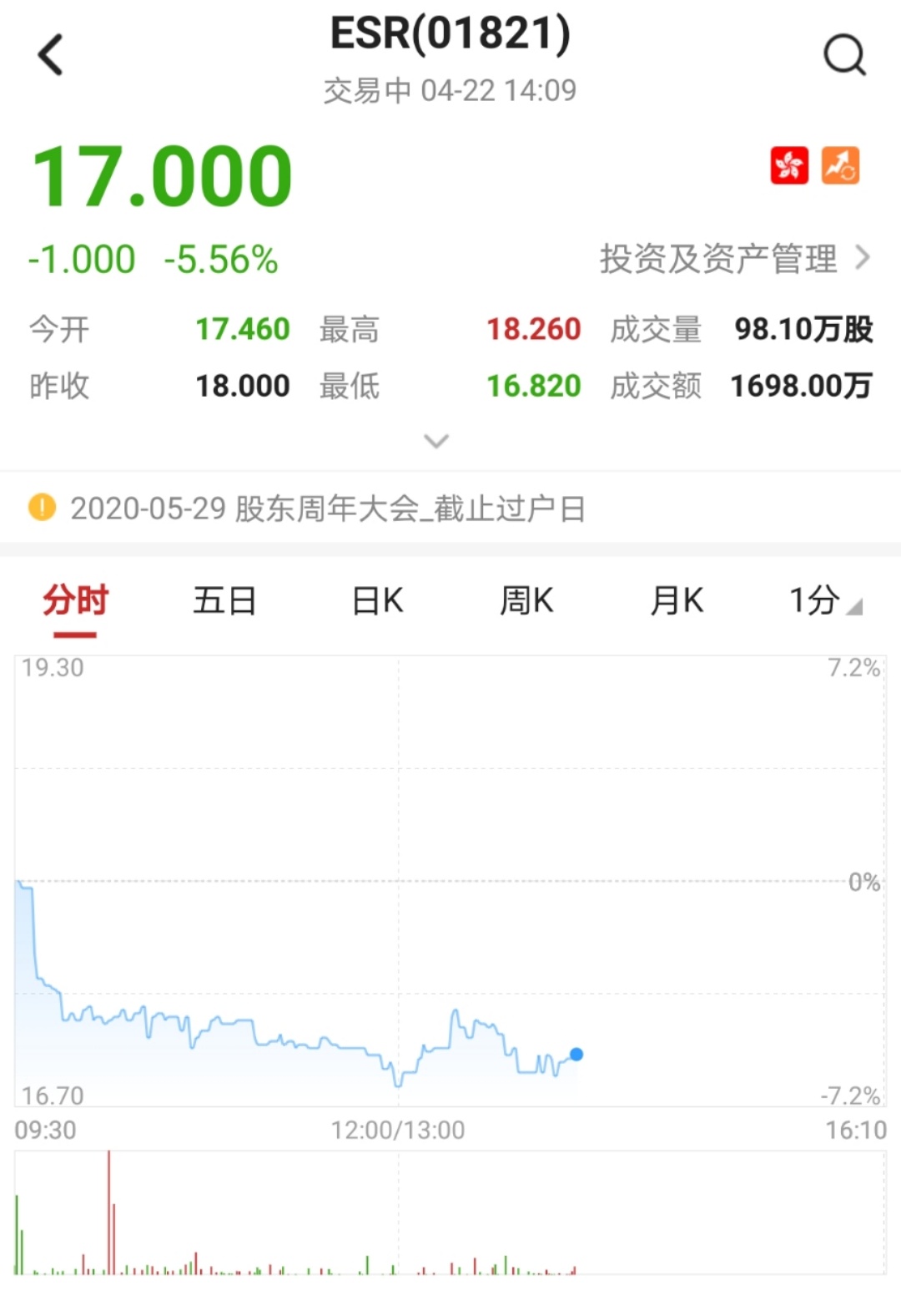 智通财经APP获悉,ESR(01821)遭美国资本集团减持134.08万股,涉资约2180.21万港元。该股盘中一度挫逾6%,截至14时09分,跌5.56%,报价17港元,成交额1698万。