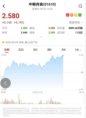 智通财经APP于《4个交易日、7亿资金、30%涨幅,中粮肉食(01610)欲开启神奇之旅》中提示到:目前生猪出栏量的恢复仍需较长时间,而需求端已经出现明显恢复态势,因此猪价预计全年将保持高位,像中粮肉食这样出栏形势和头均利润都得到数据验证过的龙头养殖企业,后续将会随着板块热度回升再度迎来一波不错的行情。