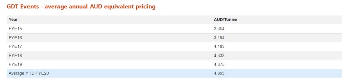 在澳洲乳品主要产区,LDD的总部所在地新南威尔士州,农场、牧场都遭受了巨大损失,导致原奶产量下降。从2019年7月至2020年2月,新南威尔士州原奶产量为7.15亿升,较同期下降5.6%。而且,澳洲整体奶源价格也在飞涨。通过GDT查询乳制品价格可发现,今年以来乳制品价格已达到4893澳元/吨,较去年同期上涨11.84%。这对想在澳洲加大原奶采购的蒙牛而言,可谓飞来横祸。
