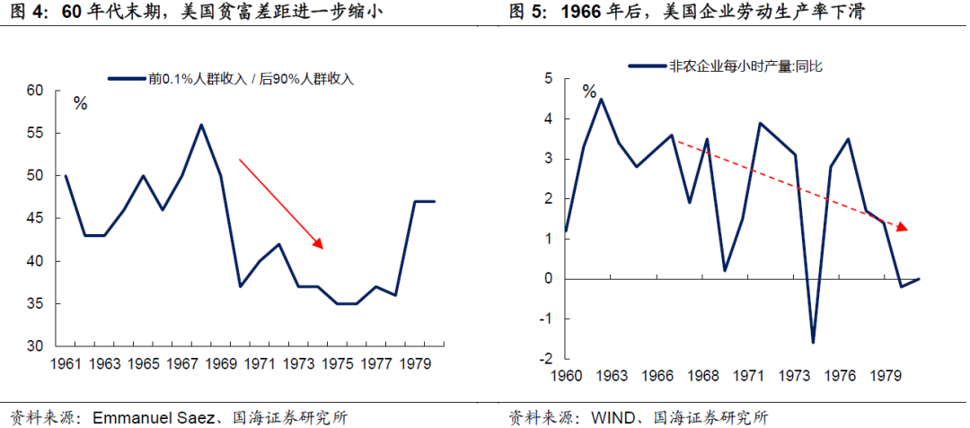 另外,美国政府进行“新政”式的社会改革,也不利于社会效率的提升。60年代,林登·约翰逊政府进行了一系列旨在结束贫困、缩小贫富差距的社会改革,统称为“伟大社会”计划。该计划通过“劫富济贫”的方式,提升底层民众的福利水平。类似于罗斯福“新政”,此类改革虽然促进了社会公平,但打击了私人部门的生产积极性。