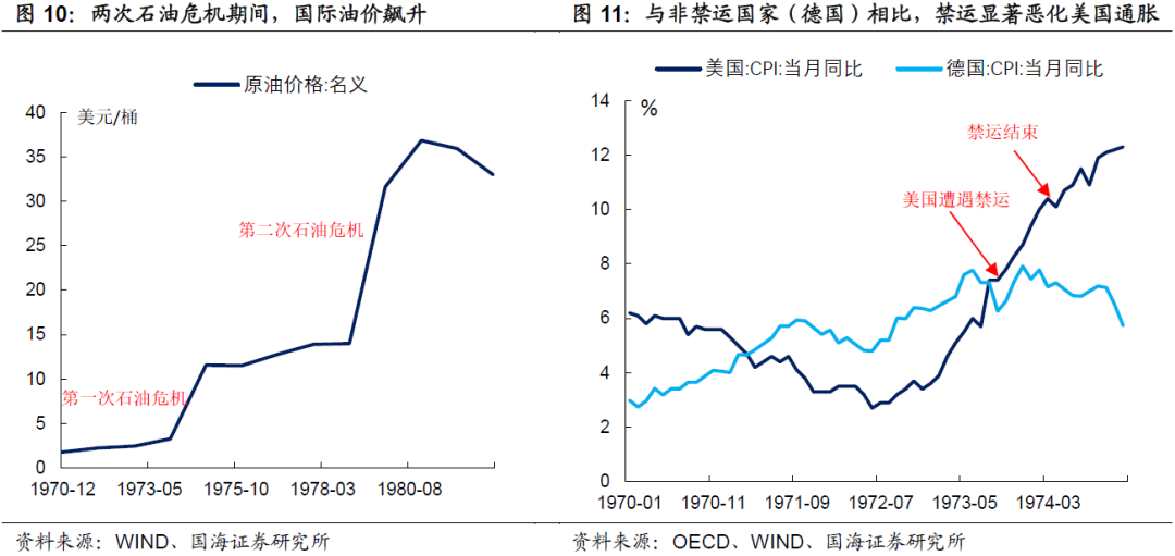 1970年美国第一轮通胀,来源于60年代末林登·约翰逊政府的赤字政策。当年美国实际GDP负增长,CPI一度达到6%以上。