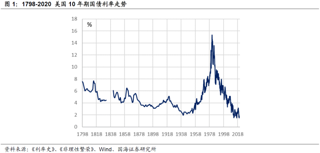 为了回答这些问题,我们梳理了美国建国后,其国债市场长达230余年的历史,试图从利率的角度,解析美国人口、产业、政策、金融环境、价格等多方面的演变。在历史的长河中,探寻未来美国经济的行进方向。