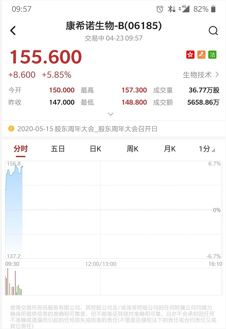 智通财经APP获悉,4月22日,上交所发布科创板上市委2020年第21次审议会议公告,康希诺生物股份公司首发4月30日上会。康希诺生物-B(06185)早盘继续走强。截至发稿,涨5.71%,报155.4港元,成交额5696.2万港元。