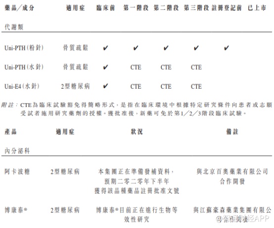 此外,公司自主创新研发的用于治疗II型糖尿病的药物Uni-E4已处于上市前的最后冲刺阶段。