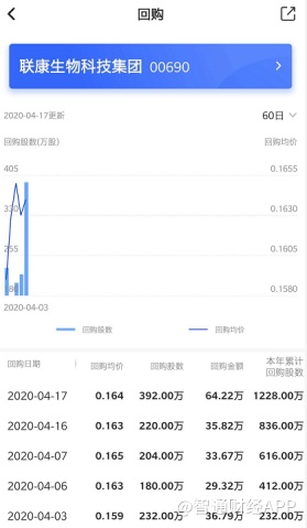智通财经APP了解到,为了提振投资者信心,维护公司的投资价值,截至2020年4月20日,联康生物共实行了5次股票回购,累计回购股数达到1228万股,累计回购金额达到199.82万港元。