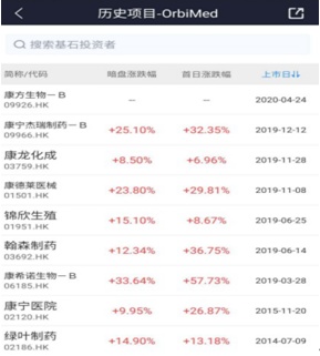 有业内人士向智通财经称,有D轮投资者出现在基石投资者清单中,传递投资信号积极。且OrbiMed等基石投资者参与的公司,历来在港股市场上表现斐然: