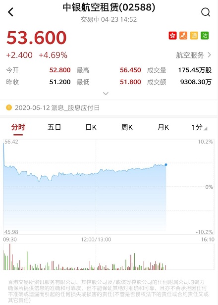 智通财经APP获悉,大和发布报告称,中银航空租赁(02588)公布与美联航达成售后回租协议,涉及22架波音客机,预期交易会在今年完成,未来会有更多相关交易。该行将公司目标价由82港元升至85港元,维持评级“买入”不变。截至发稿,该股涨4.59%,报53.6港元,成交额9337.24万港元。