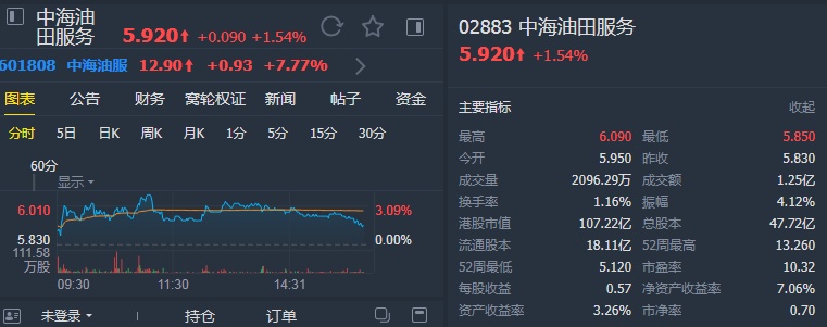 该行称,中海油服有大约8成的收入来自中海油(00883),盈利能力取决于中海油的内地资本开支,相信4月底中海油进一步澄清资本开支的计划,会成为中海油服的潜在催化剂,令其2020年预测市帐率由0.62倍升至0.68倍。