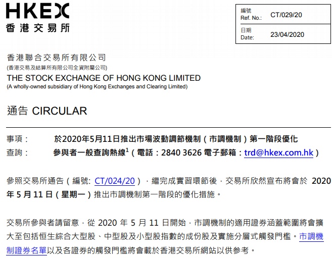 市调机制优化旨在扩大机制所涵盖的证券范围及引入分层触发界线和稍后容许多次触发,以进一步减低因个别股票的极端价格波动所造成的风险,并反映最新的国际常规及监管指引。