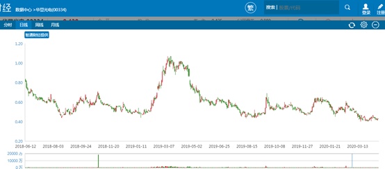2020年一季度营收下滑幅度再超60%,华显光电(00334)股价被钉牢在了历史最低谷。