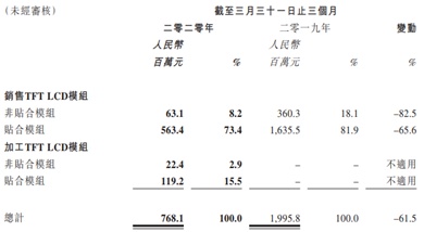 而在营收规模方面,通过拓宽产品品类以及在智能家居及电子教育类产品销售单价提升的带动下,销售TFT LCD模组中的非贴合部分营收82.5%的同比下滑低于销量跌幅。不过贴合部分营收65.6%的同比跌幅却较销量下跌更多,再加上由于加工业务仅收取加工费用,单片贡献收入远低于原销售业务,因此2020年一季度营收仅录得7.68亿元,较去年同期的19.96亿元下跌近61.5%。