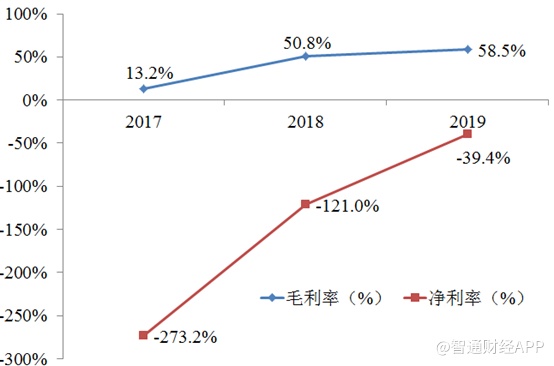 首先是收入大幅增长,且净亏损缩窄,其次是利润率也有了提升,2017年至2019年亿航智能的毛利率从13.2%增至58.5%,同期净亏损率从-273.2%缩减至-39.4%,整体向盈亏平衡点靠近。