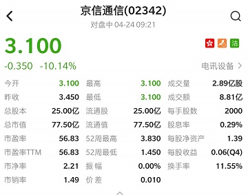 智通财经APP获悉,京信通信(02342)公布,公司拟透过先旧后新方式配售2.82亿股新股,每股配售价3.05港元,较昨日收市价3.45港元折让约11.59%,估计所得款项净额约为6.8303亿港元。截至发稿,跌10.14%,报3.1港元,成交额8.81亿港元。