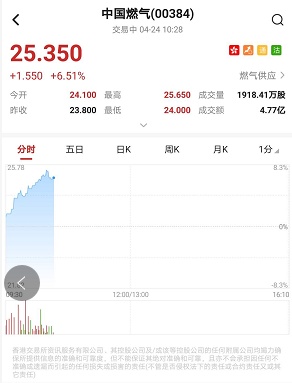 截至10时28分,涨6.51%,报价25.35港元,成交额4.77亿。