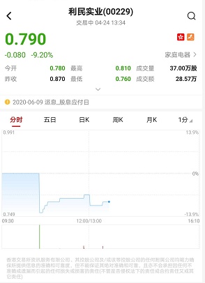 智通财经APP获悉,利民实业(00229)发盈警,首季度纯利同比预降70%,盘中股价无量下挫,截至13时34分,跌9.2%,报价0.79港元,成交额28.57万。