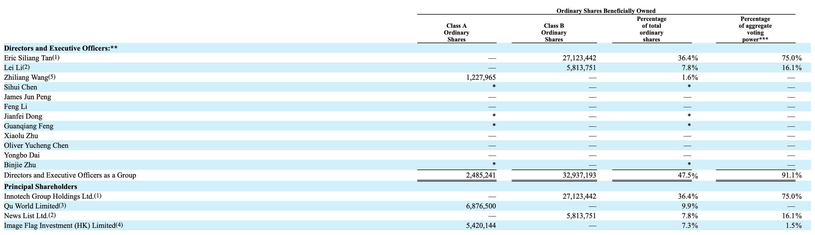 谭思亮为趣头条第一大股东,他及其家人通过Innotech Group Holdings Ltd.持有上述股份。据报道,在2018年8月向SEC递表时,谭思亮持有趣头条2712万普通股,持股比例为39%。