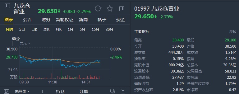该行表示,虽然九龙仓置业目前估值较低,对每股资产净值折让58%,2021年度股息回报约6厘,但预计公司短期估值仍会受压,维持对其“减持”评级及目标价36港元。