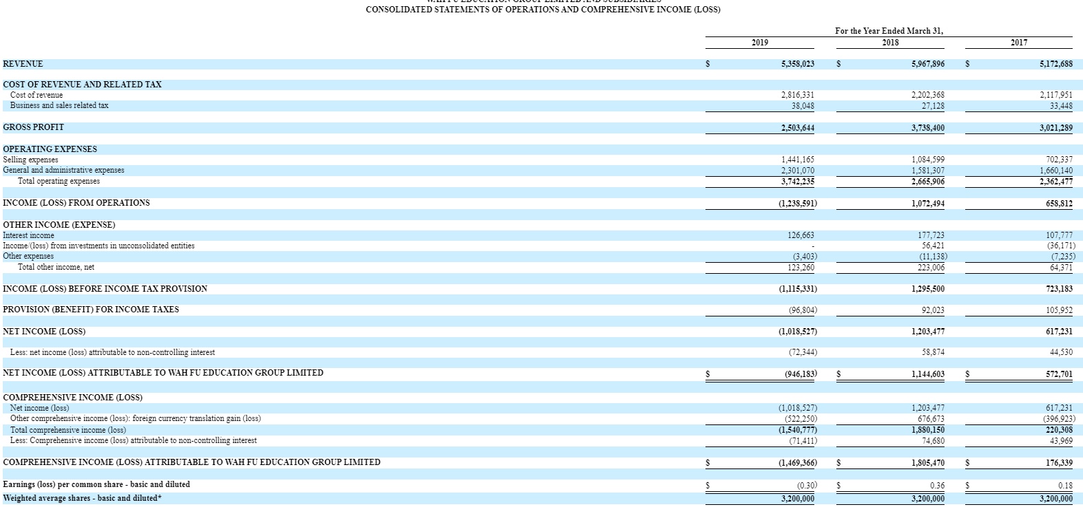 智通财经APP获悉,华富教育(WAFU.US)于4月23日向SEC提交20-F年度报告,披露了截至2019年3月31日的2019财年业绩。