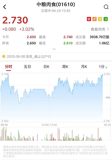 智通财经APP获悉,据报道,目前美国已经有10%的猪肉加工厂暂时关闭,预计本周还有继续有加工厂关闭。市场人士认为,外围进口猪减少,中粮肉食(01610)将受益。截至发稿,中粮肉食涨3.02%,报2.73港元,成交额1.06亿港元。