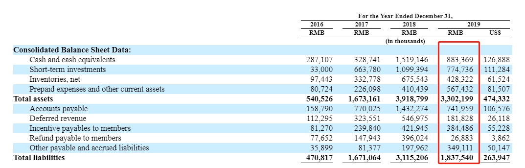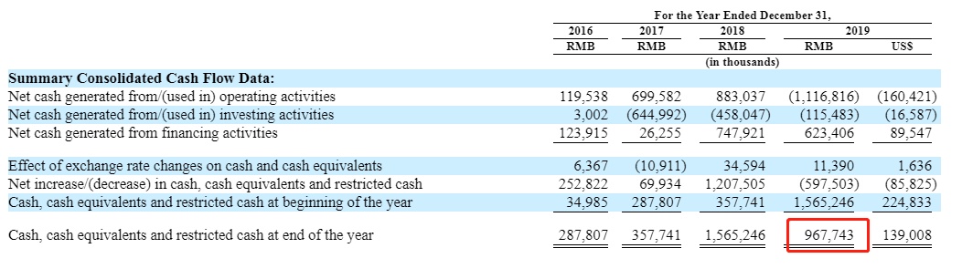 截至2019年12月31日,云集持有的现金和现金等价物和受限制现金为9.68亿元,低于截至2018年12月31日的15.65亿元。