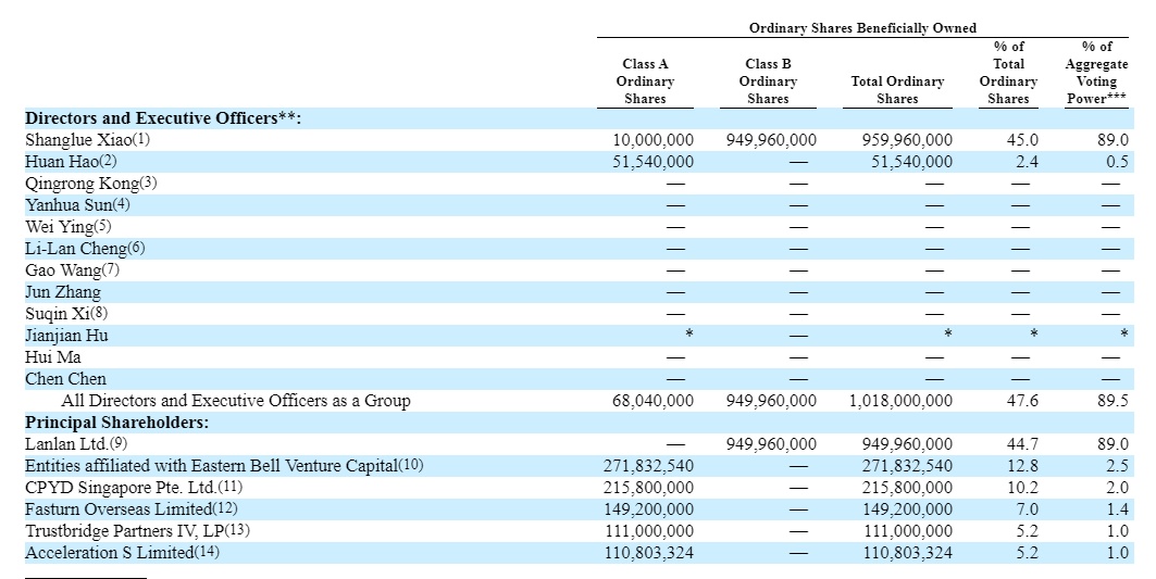 Trustbridge Partners IV, L.P为第五大股东,与之前相比,持股数减少(仅持有A类普通股,持股数由143,000,000股减至111,000,000股),持股比例降至5.2%(此前为6.6%),拥有1.0%的投票权(此前为1.3%);
