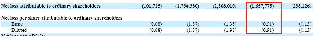 归属于普通股股东的净亏损为16.58亿元,摊薄每股亏损0.91元;2018年净亏损23.08亿元,摊薄每股亏损1.98元。