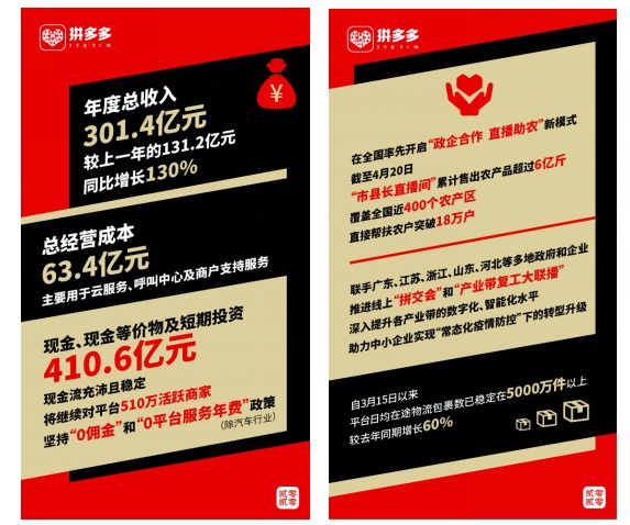 现金储备方面,拼多多持有现金、现金等价物及短期投资共计410.6亿元,其中不包括2020年一季度11亿美元的定向增发融资。