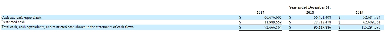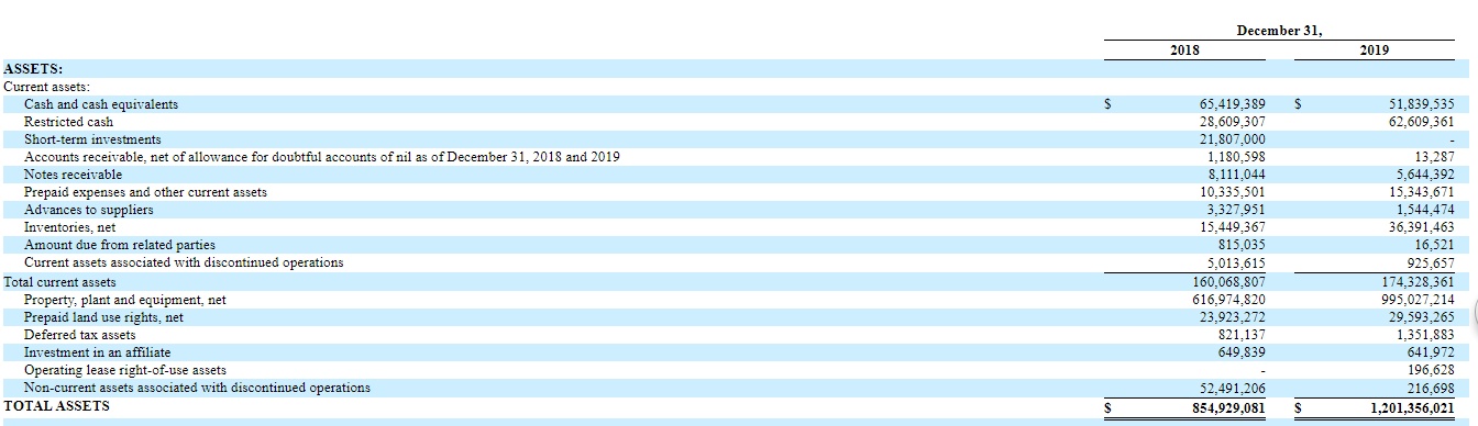 截至2019年12月31日,大全新能源持有的现金和现金等价物和受限制现金为1.153亿美元,上年同期为9511.99万美元。