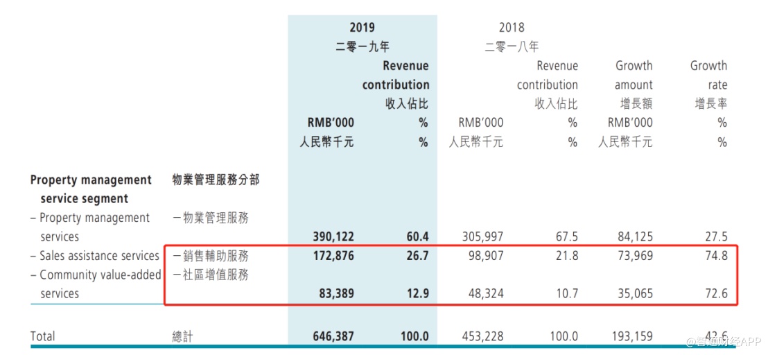 据奥园健康2019年财报,公司物业管理服务分部收入结构包括,物业管理服务、销售辅助服务和社区增值服务。其中销售辅助服务收入达到1.73亿元,同比增长74.8%,社区增值服务收入达到0.83亿元,同比增长72.6%。