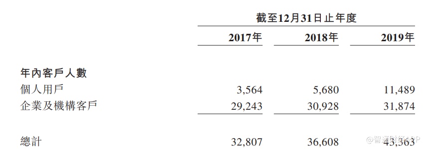 业务网络的扩张自然带动了客户数量的增长,中税网的客户数量从2017年的3.28万增至2018年的3.66万,再增至2019年的4.34万,年复合增速近15%。从客户结构上看,企业及机构客户增长相对平缓,但个人用户则增长迅猛,从2017年的3564增至2019年的1.15万。