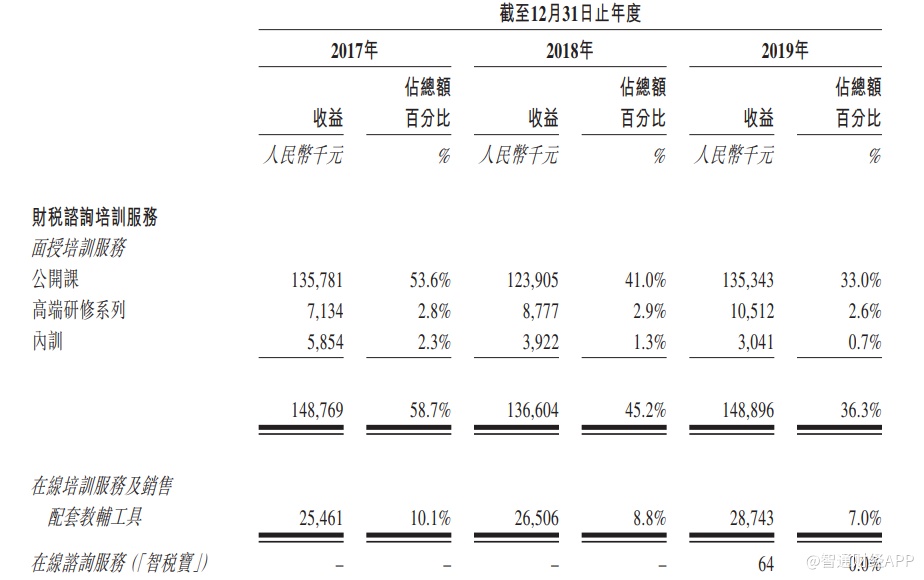 据招股书显示,中税网主要围绕财税展开咨询培训以及职业培训两大业务。若以2019年收入计算,中税网在中国财税的咨询培训领域排名第一,在财税的职业培训领域排名第五。