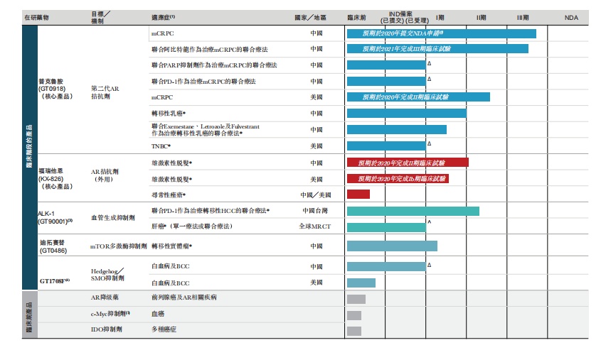 普克鲁胺(GT0918):普克鲁胺为主要在研药物,正在中国进行mCRPCIII期临床试验,计划于2020年提交NDA。
