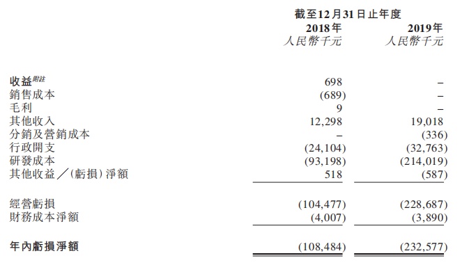 公司经营业绩主要受研发成本及行政开支推动,研发成本由2018年的人民币9319.8万元增加129.6%至2019年的人民币2.14亿元。公司预计普克鲁胺商业化后,其销售将成为收益的主要来源。