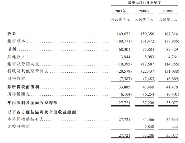 该企业的收益由截至2017年12月31日止年度的人民币1.49亿元增加至截至2018年12 月31日止年度约人民币1.59亿元。由截至2018年12月31日止年度为约人民币1.59亿元增加至截至2019年12月31日止年度约为人民币1.67亿元。