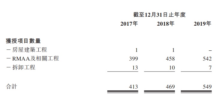 公司主要业务为提供(i)房屋建筑工程;(ii)RMAA及相关工程;及(iii)拆卸工程。往绩记录期间,公司主要作为总承建商承接项目。其次,也在RMAA及相关工程以及拆卸工程的若干项目中担任分包商。