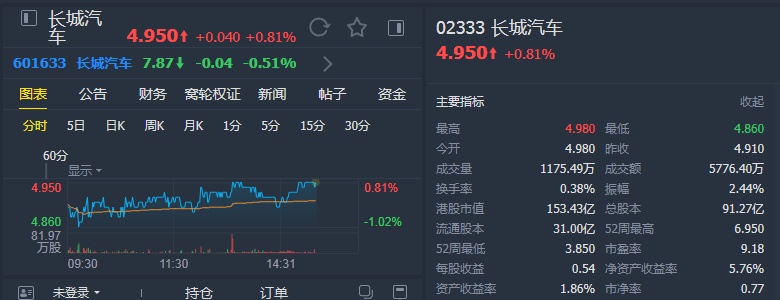 智通财经APP获悉,大和发布报告称,长城汽车(02333)首季核心盈利为收支平衡水平,在销售疲弱下,此表现有弹性,预计随着销售复苏,盈利在第二季将逐步恢复。集团首季净亏损6.5亿元人民币,去年同期净利润7.73亿元人民币,管理层表示主要由于俄罗斯卢布贬值,故出现外汇亏损7.2亿元人民币,撇除相关亏损,即处收支平衡水平。