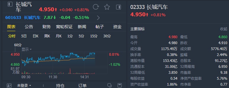 公司称,第一季自然盈利同比持平,同时由于稳定SUV和货车快速增长,其零售销售在4月的前20天恢复正增长,五月份批发有正面增长。该行维持其目标价6港元,以及“跑赢大市”评级。