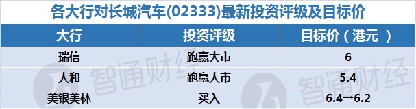 三、各大行对长城汽车(02333)最新投资评级及目标价