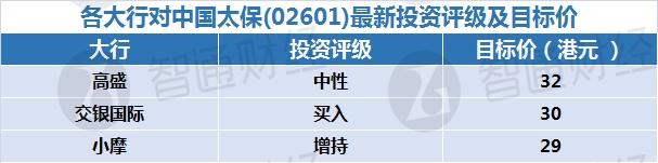 四、各大行对中国太保(02601)最新投资评级及目标价